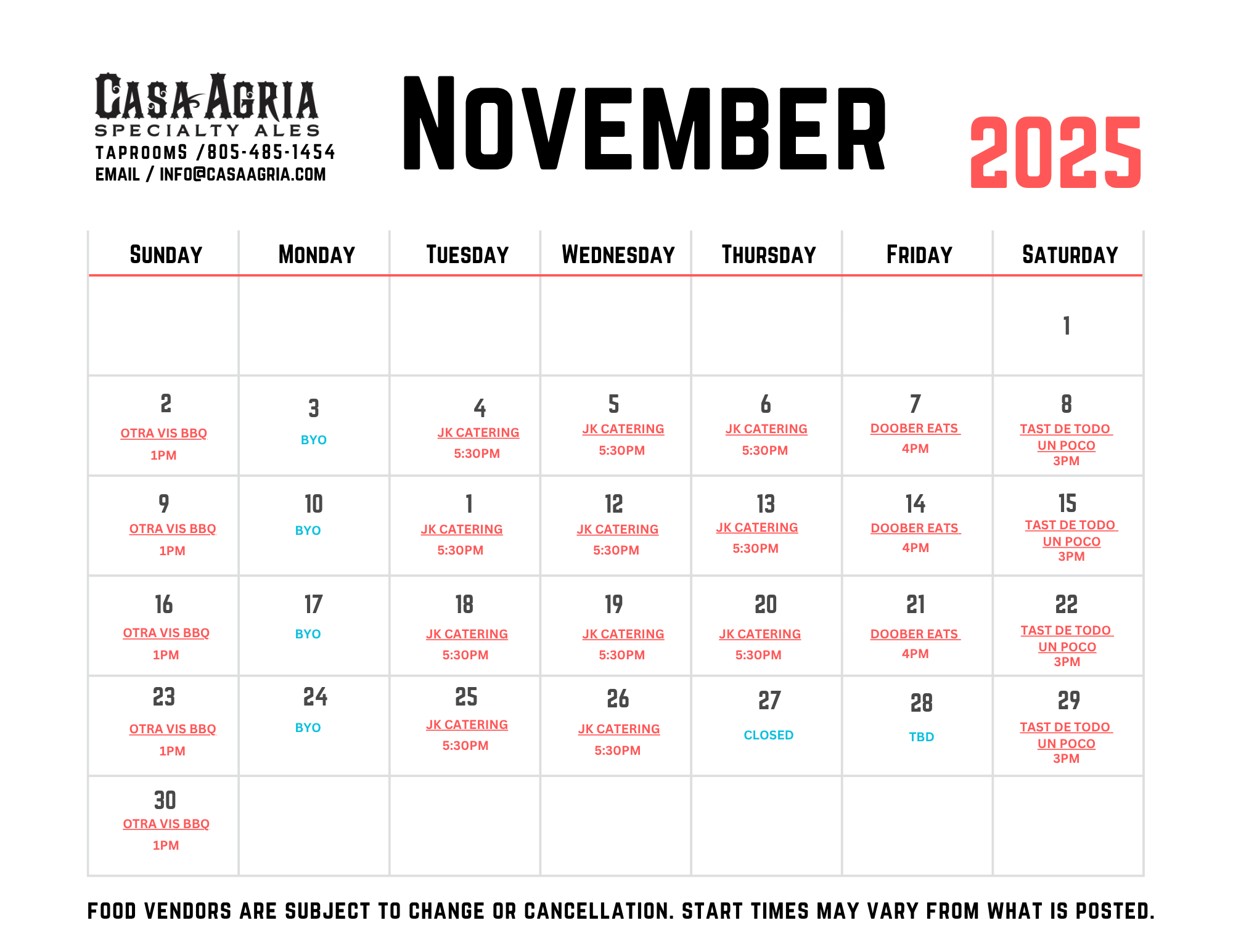 Interested in being a food vendor? Email us at info@casaagria.com.